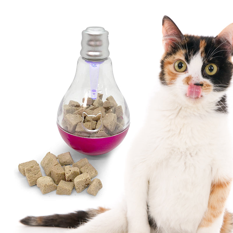 Esta bombilla o Ampolleta Chiflada de MadCat es un dispensador de golosinas o comida con luz que cambia de color, mide 12 cm. ¡Alegrará el tiempo de juego de tu gatito! Este juguete interactivo tiene un fondo redondeado que se balancea hacia adelante y hacia atrás cuando se lo empuja o golpea. Enciende la luz para mayor entretenimiento; una vez que termina el tiempo de juego, la luz se apaga automáticamente. ¡El tornillo en la parte superior facilita la limpieza! Ideal para gatitos, adultos. Las baterías están incluidas.