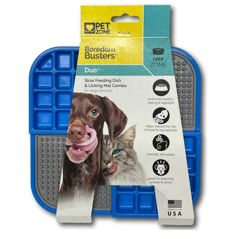 Boredom Busters Blue Duo de Pet Zone está diseñada para calmar e involucrar la actividad para ayudar a aliviar situaciones estresantes o recompensar con una golosina deliciosa.