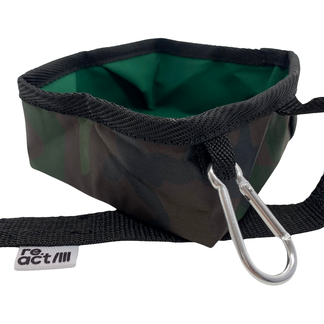 Hecho en Chile de reutilización, plato plegable para el agua o comida ideal para viajes o paseos, contiene un forro interior con tela impermeable, resiste mas de 24 horas con agua, enganche para el pantalón o bolso, se dobla para que ocupe lo menos de espacio posible