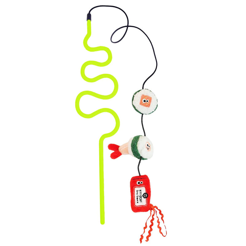 Esta divertida varita de delicioso sabor a sushi cuenta con un mango flexible para el juego interactivo, tres adorables juguetes de sushi suave para triplicar la diversión. Este juguete para gatos está lleno con una poderosa combinación de hierba gatera natural y vid plateada para la mejor experiencia de juego. Contiene Yerba gatera y silvervine que los hace aun más irresistibles y entretenidos para nuestros gatitos.